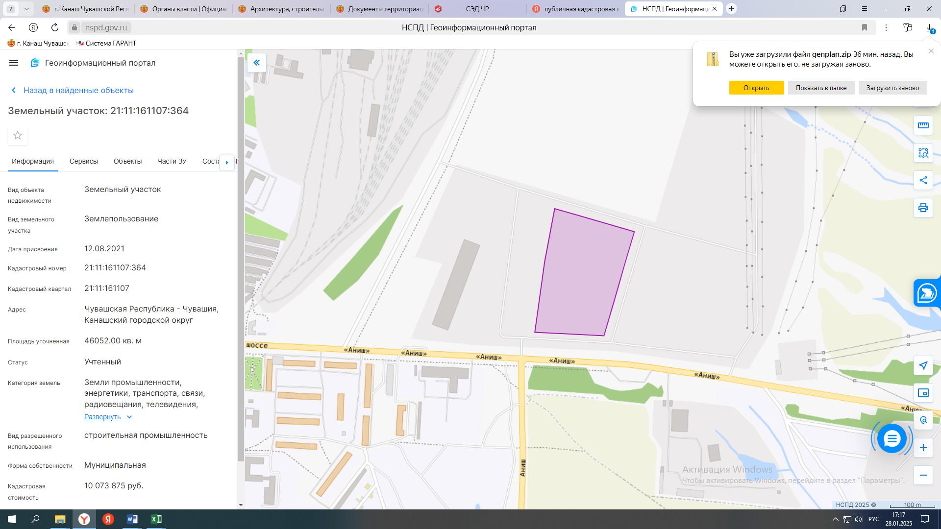 | Кадастровый номер ЗУ | 21:11:161107:364 |