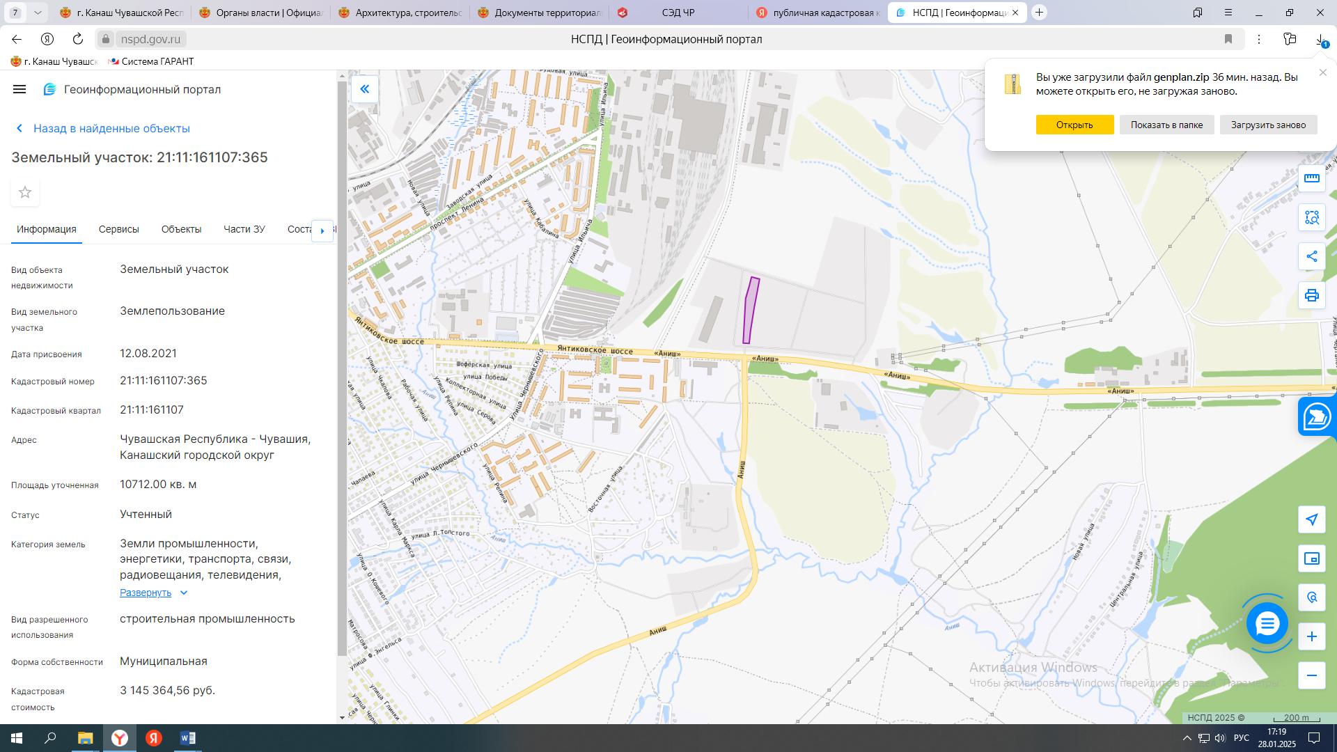 | Кадастровый номер ЗУ | 21:11:161107:365 |