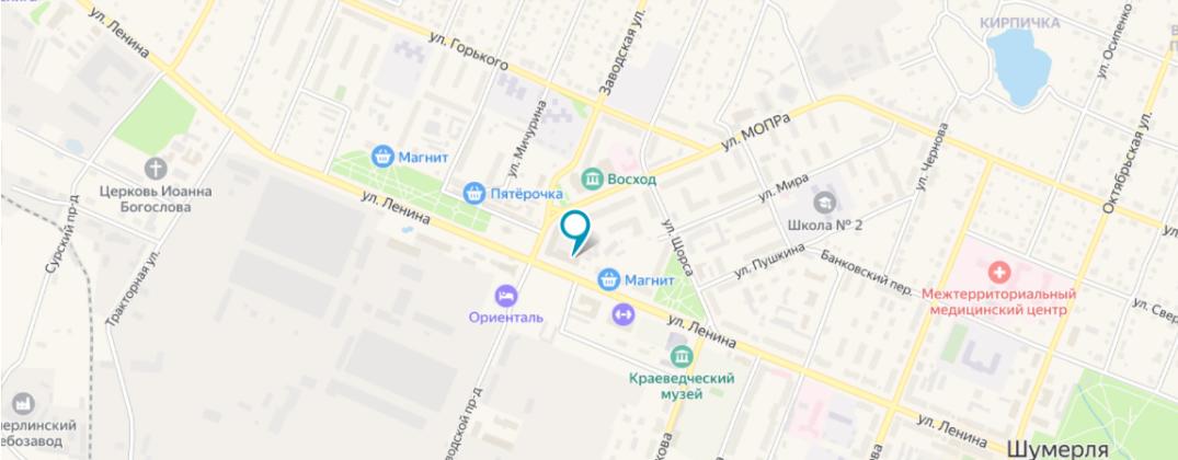 Местоположение | Чувашская Республика, г. Шумерля, ул. Ленина, д.30, 3-х этажное здание электросвязи |